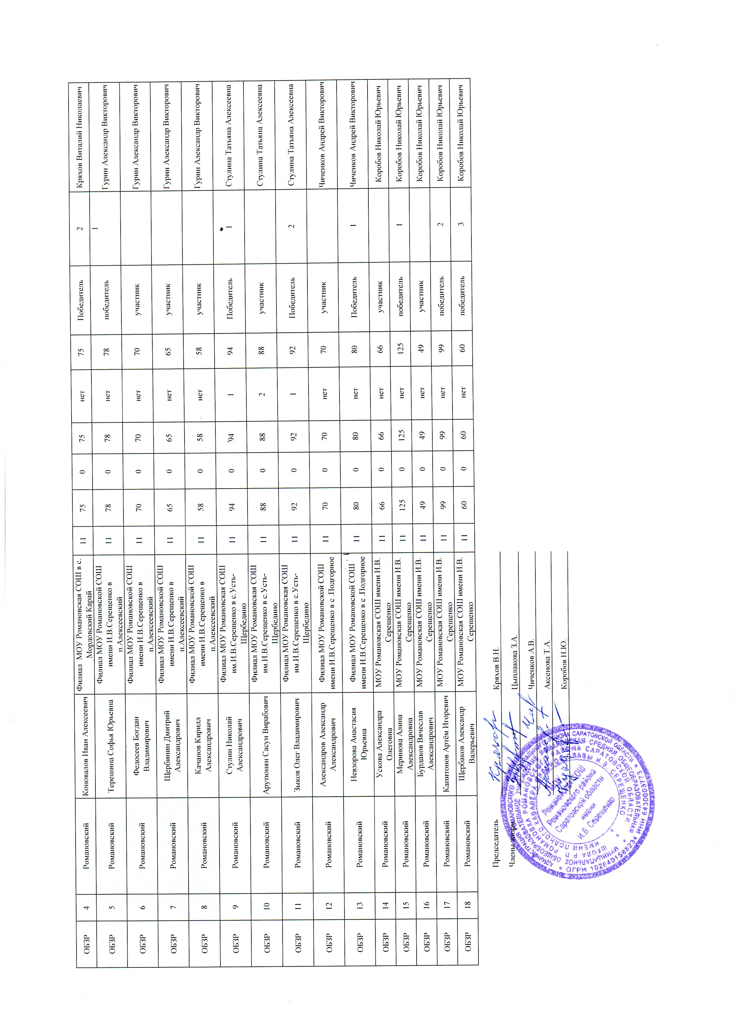Подведены итоги школьного этапа всероссийской олимпиады школьников. В нашем районе в нём приняло участие 463 обучающихся 4-11 классов из Романовской школы и всех её филиалов. Самыми массовыми по участию были предметы: математика, русский язык, литература и биология. Определены победители и призёры школьного этапа. В соответствии с набранными баллами определены участники муниципального этапа, который начинается с 12 ноября 2024 года. Будем следить за дальнейшими результатами наших ребят. Пожелаем всем им удачи и побед.